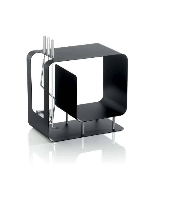 UN PORTE-BÛCHES DESIGN AVEC SERVITEUR INTÉGRÉ.